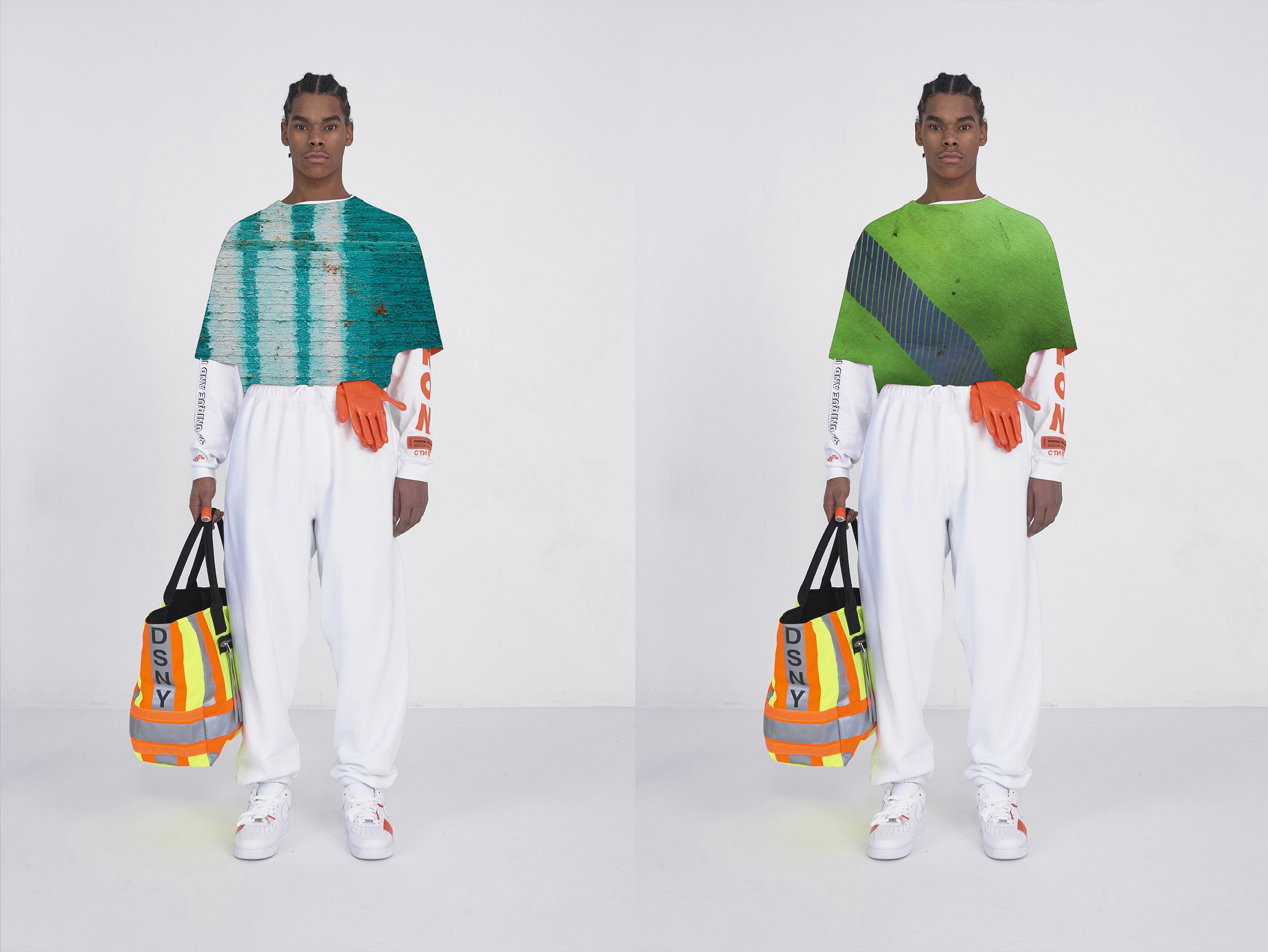 Style guide project for a printing and finishing course. A construction inspired style guide, rendered for a booklet. The models are from the Heron Preston x DSNY line, with textures and graphics I created. Made in Adobe Illustrator.