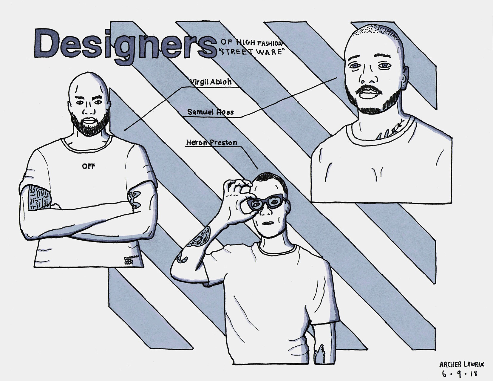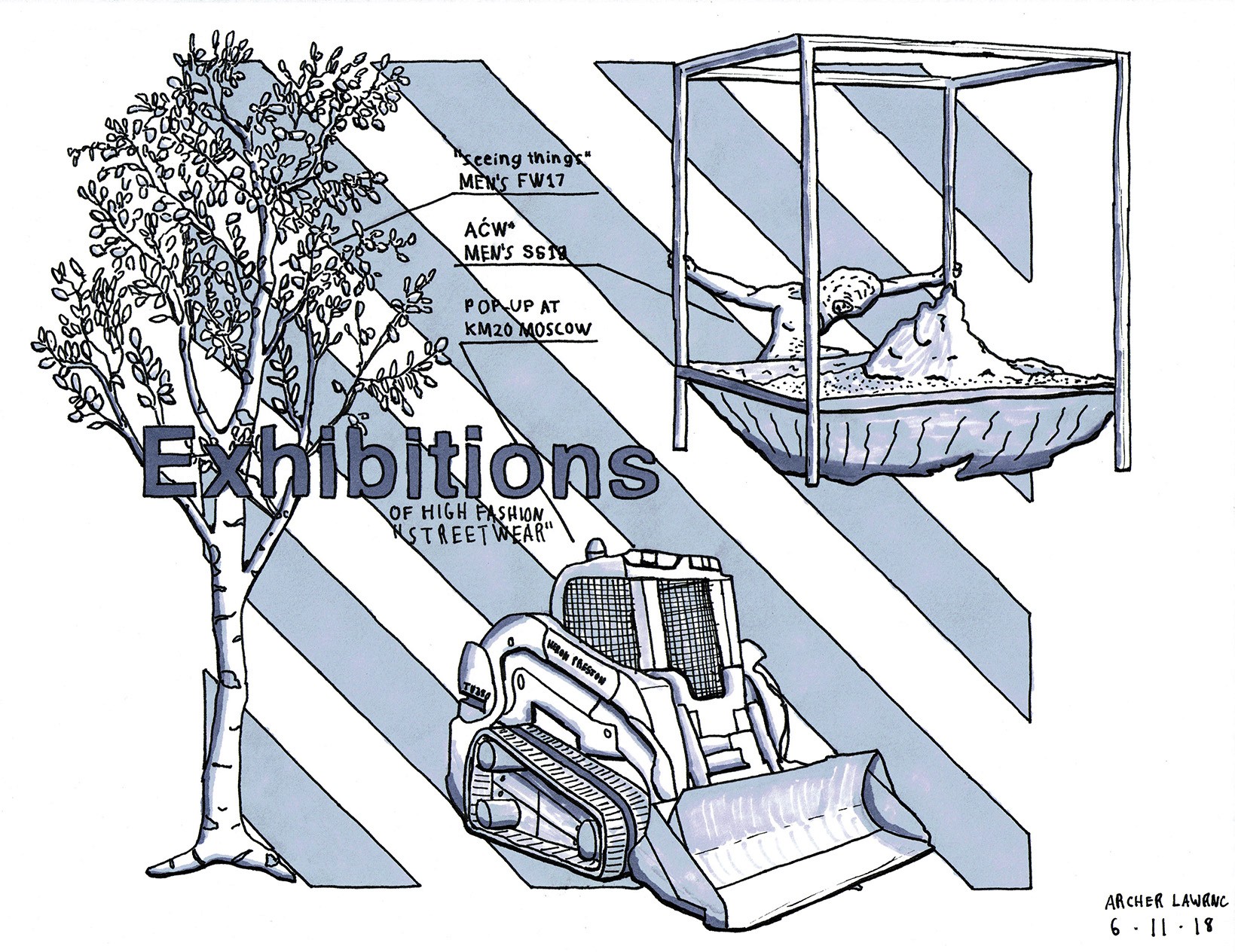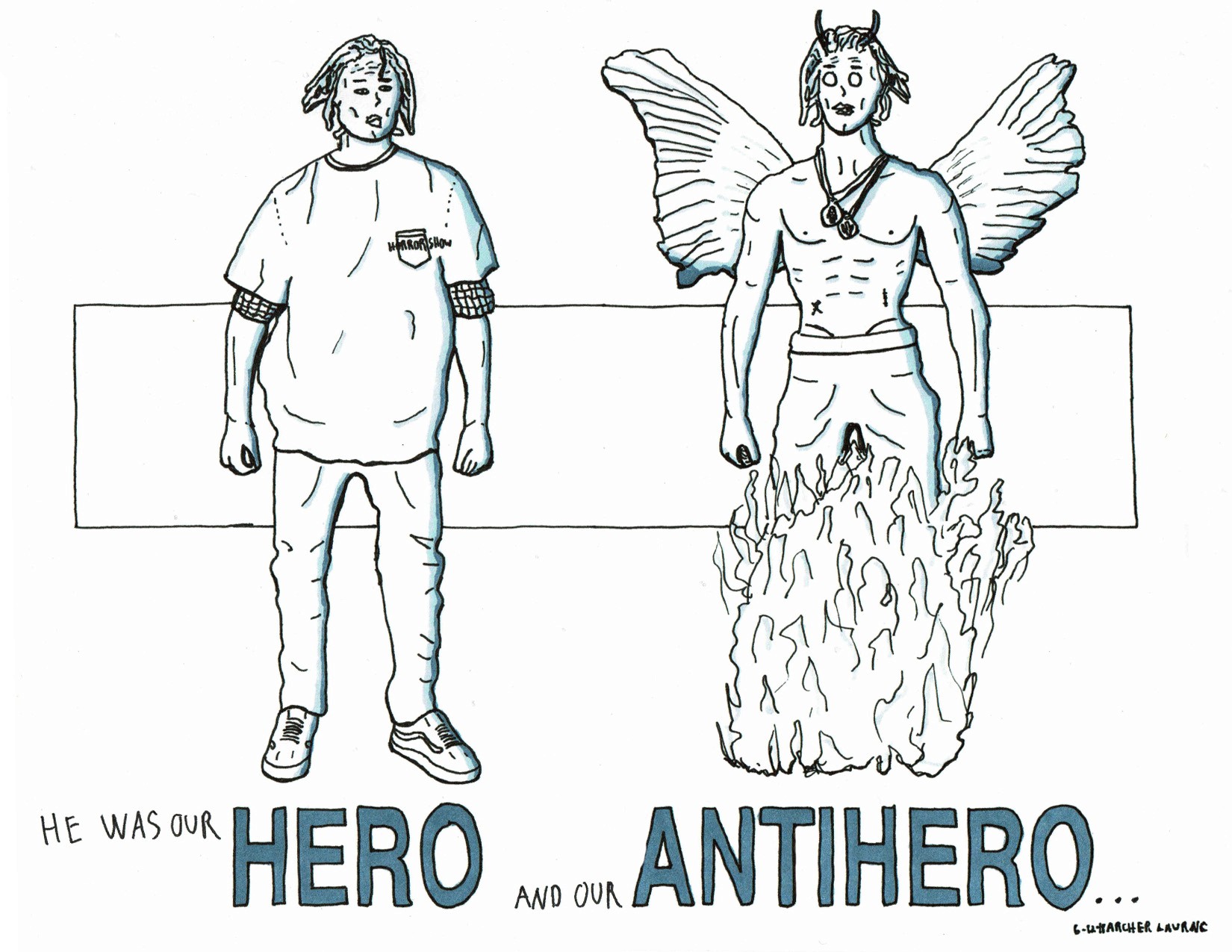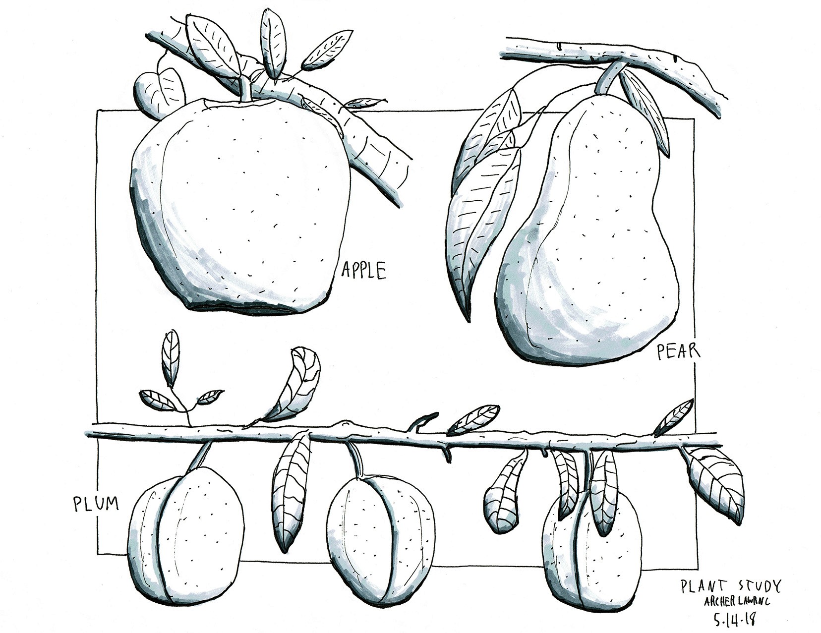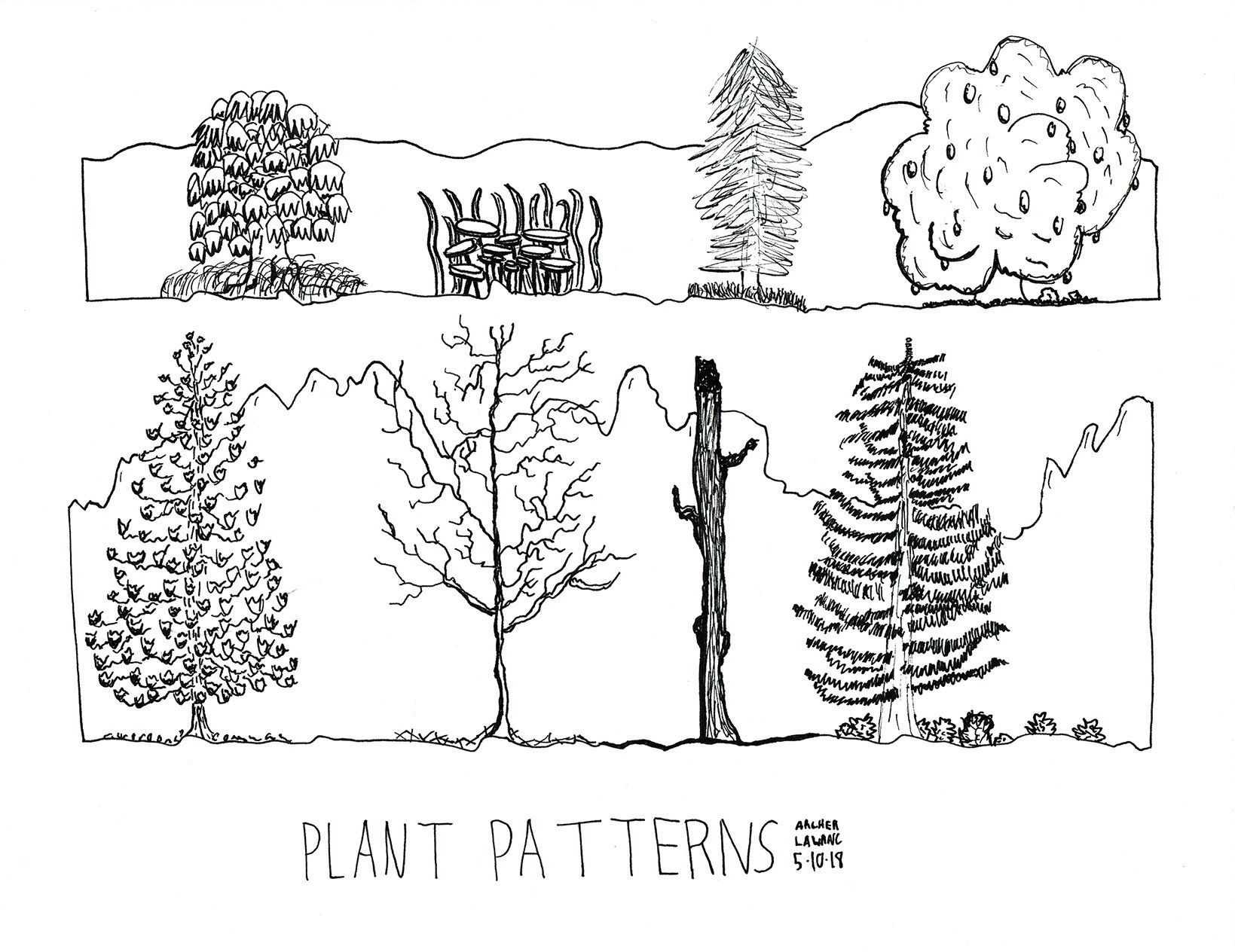 Assorted pen and shading marker illustrations.