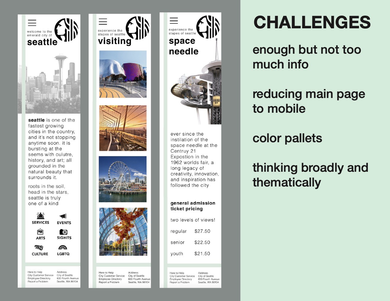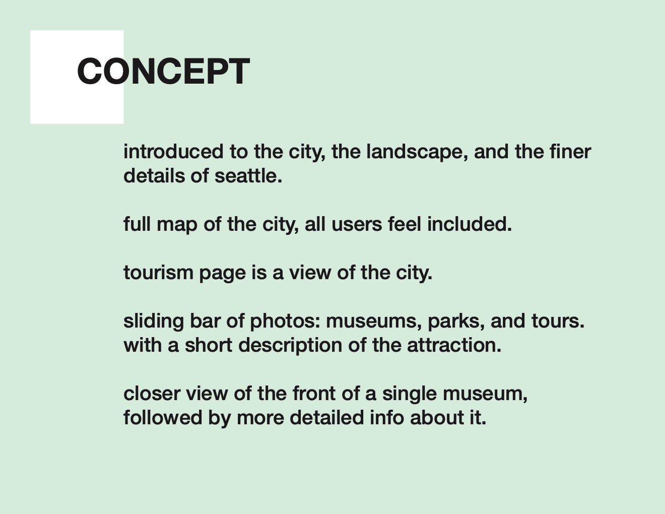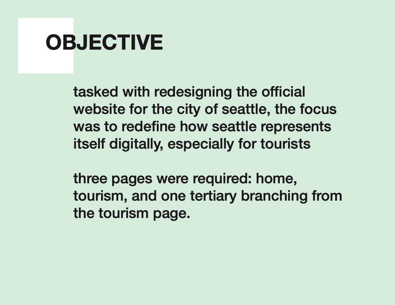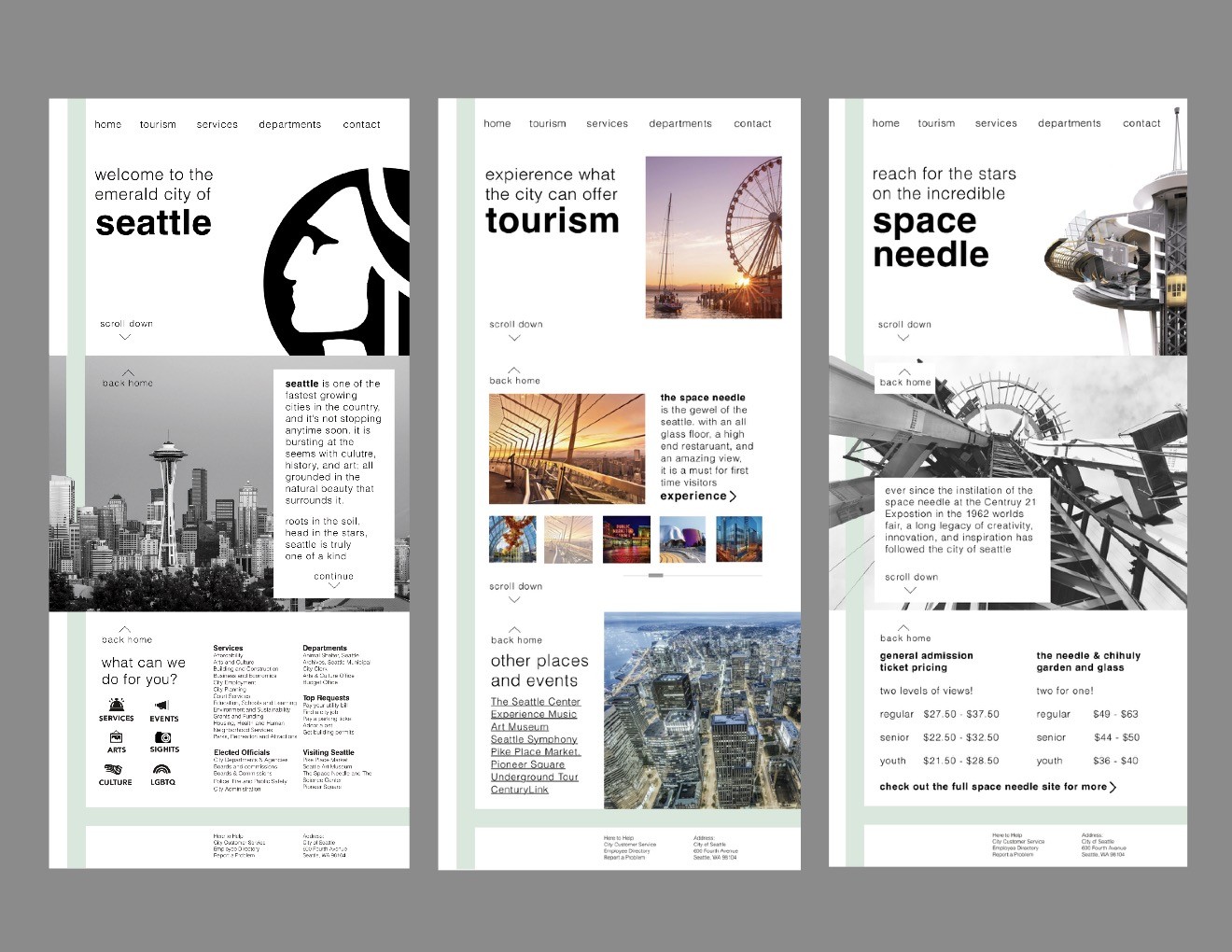 This conceptual project was a redesign of the City of Seattle's official website with a focus on enhancing the digital representation of the city, particularly for tourists. The objective was to declutter the current interface and create an attractive, clear, and intuitive website that allows users to comfortably absorb information at their own pace.